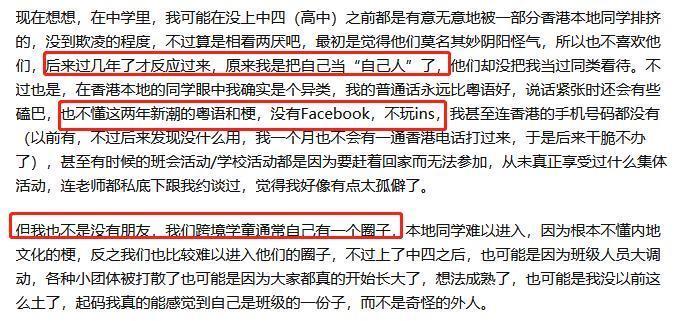 “我对我现在的班级并没有太多的融入感,如果让我自己来做选择,我不会到香港去。”